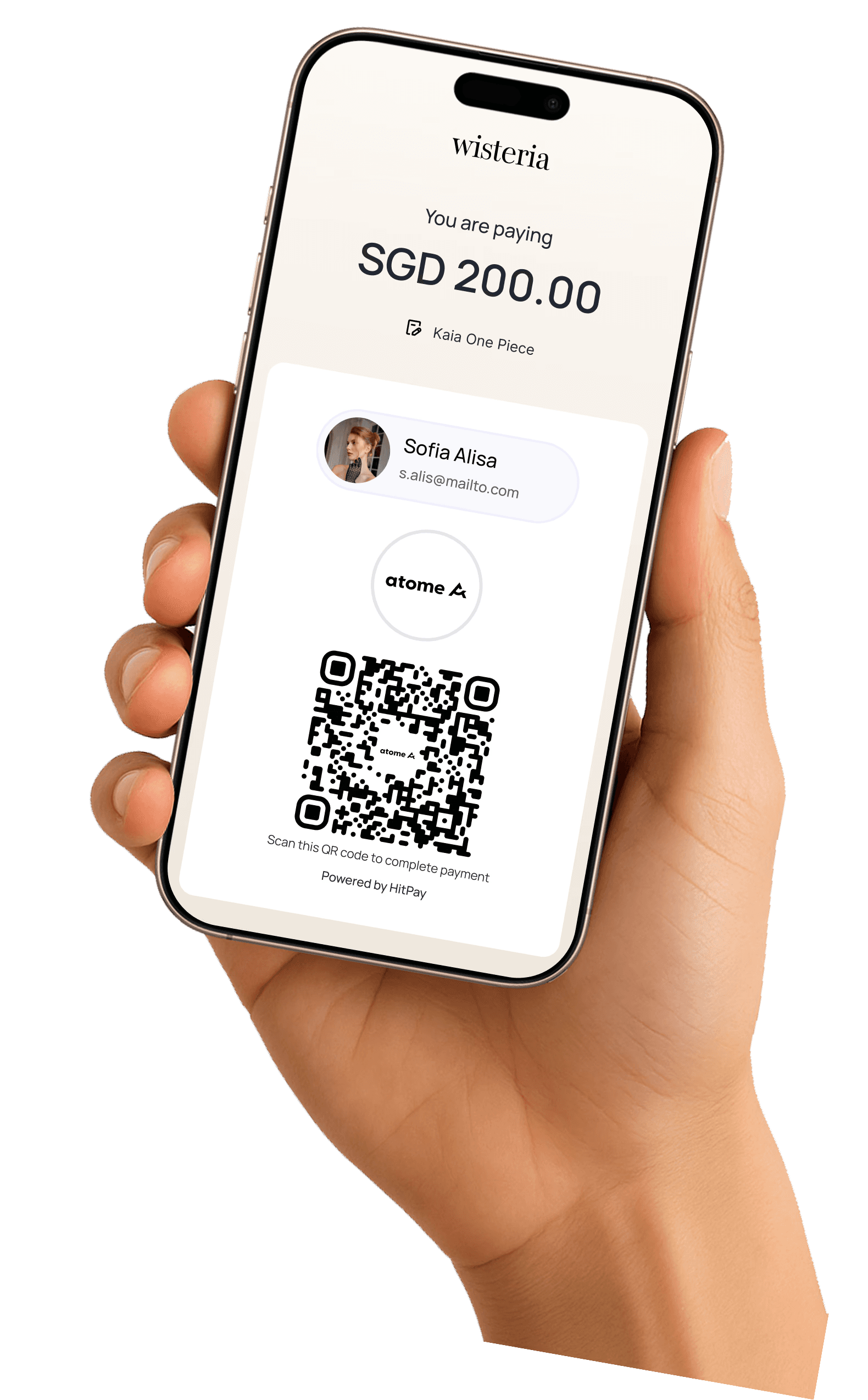 Drive in-person sales by offering Atome BNPL at checkout. With HitPay and Atome, your customers can split purchases into 3 interest-free payments — directly via QR code. No extra hardware needed.