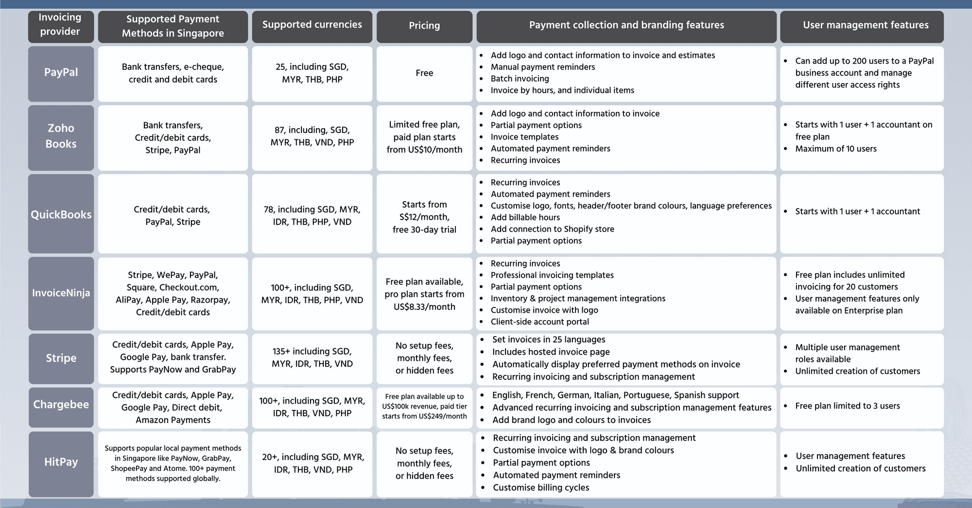 Best invoicing software for small businesses in Singapore (2023): Comparison of QuickBooks, Zoho, HitPay, and more