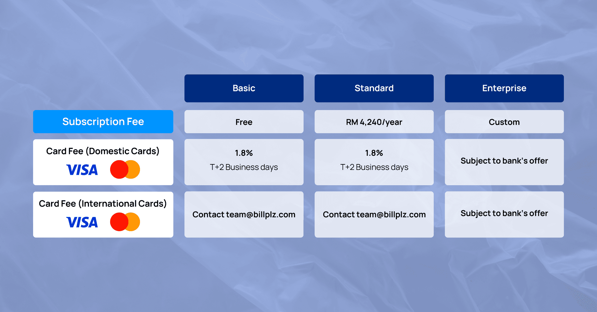 BillPlz has three membership plans: Basic, Standard, and Enterprise: