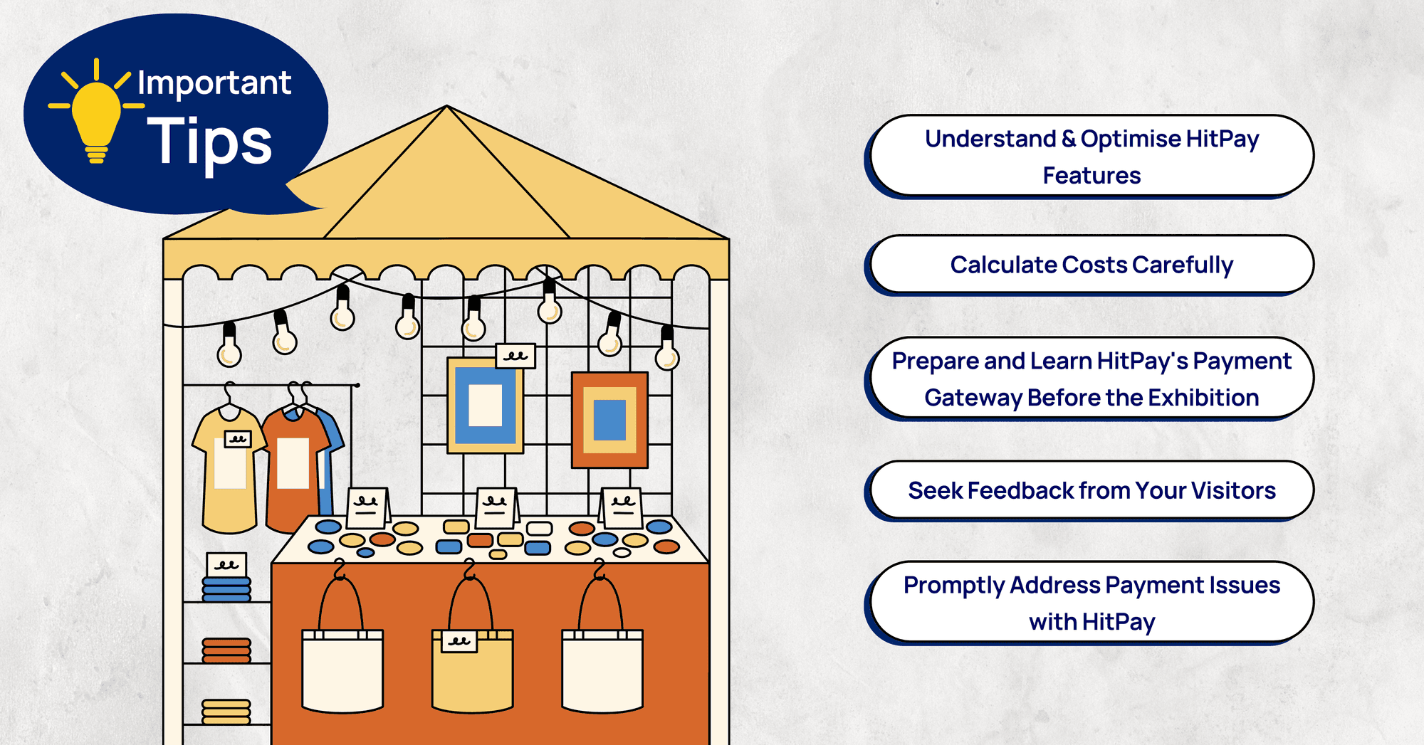Before determining product prices, meticulously study all the costs involved, including shipping and other expenses related to selling in Singapore. Make sure to incorporate these costs into the product price to ensure a suitable profit margin.Prepare and Learn HitPay's Payment Gateway Before the Exhibition: