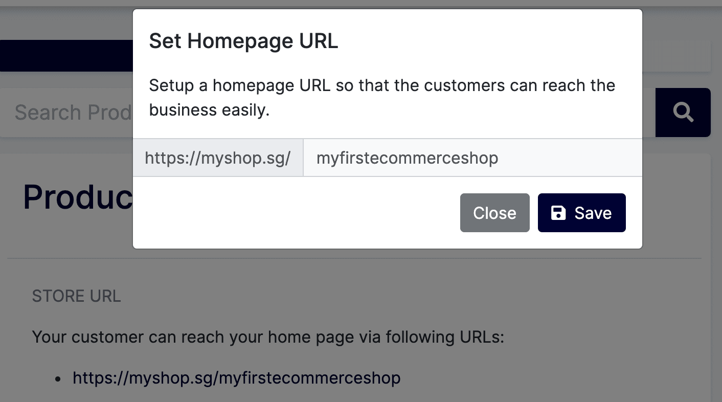 First, set a homepage URL address to help customers find your e-commerce store online. You can also easily send this URL to potential customers.