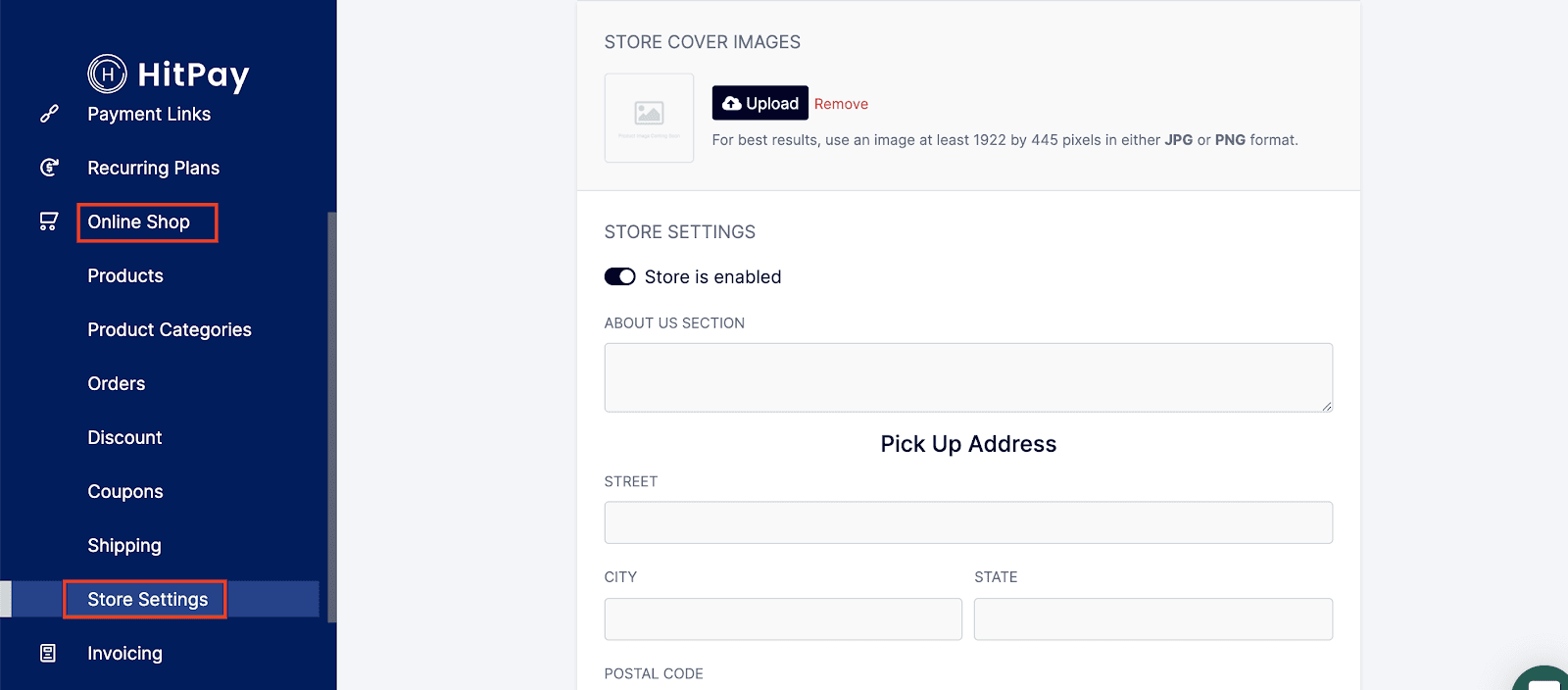 From the HitPay dashboard, navigate to Online Shop > Store Settings.