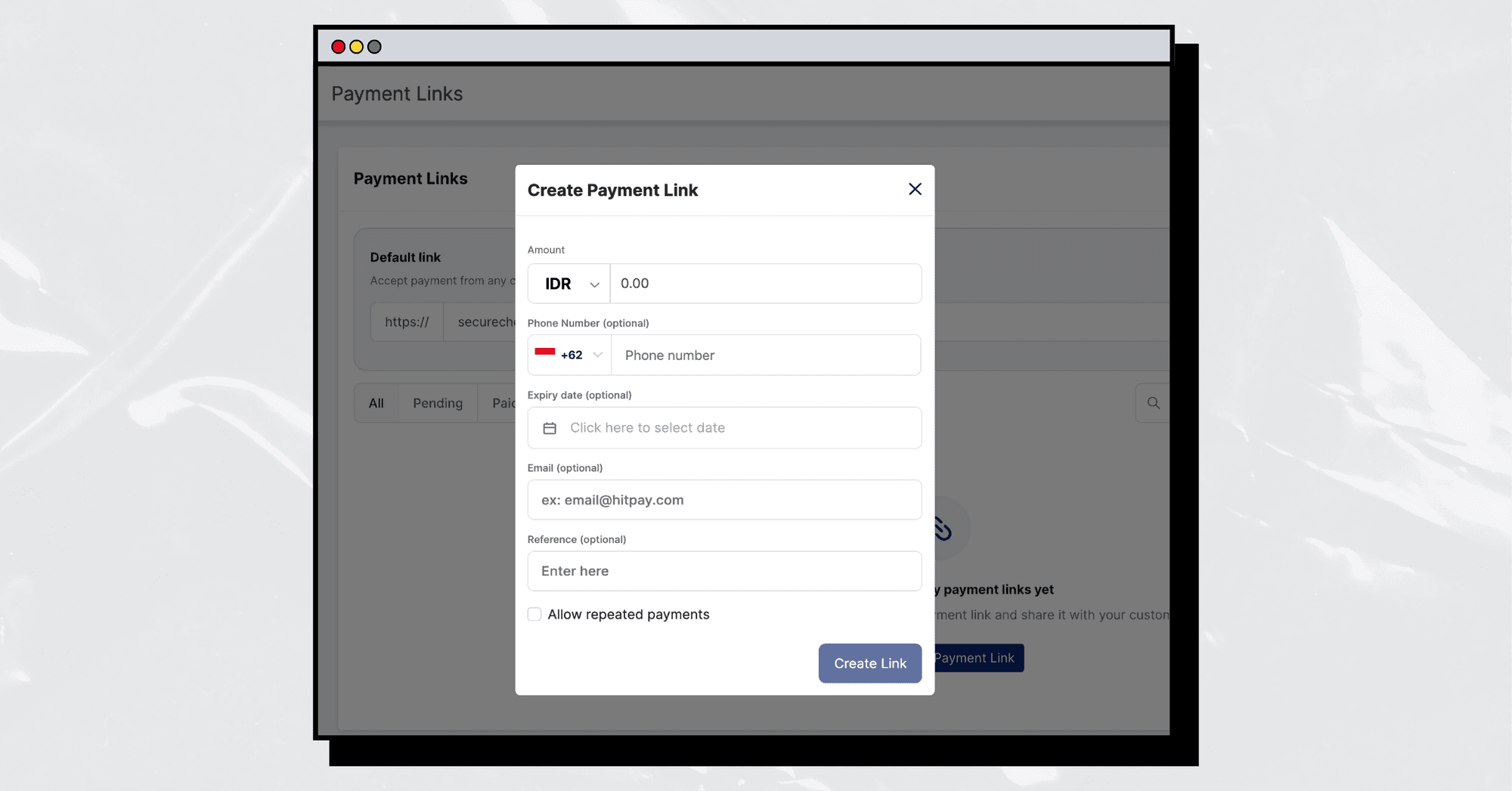 Buatlah tautan atau kode QR yang aman dengan mudah. Tautan pembayaran dari HitPay dapat disesuaikan sesuai dengan kebijakan pembayaran yang Anda tentukan. Fleksibilitas ini mencakup dukungan untuk lebih dari 100 mata uang, memungkinkan Anda memilih metode pembayaran yang sesuai, serta menyesuaikan metode pemesanan ulang berdasarkan jumlah pesanan dan mata uang.