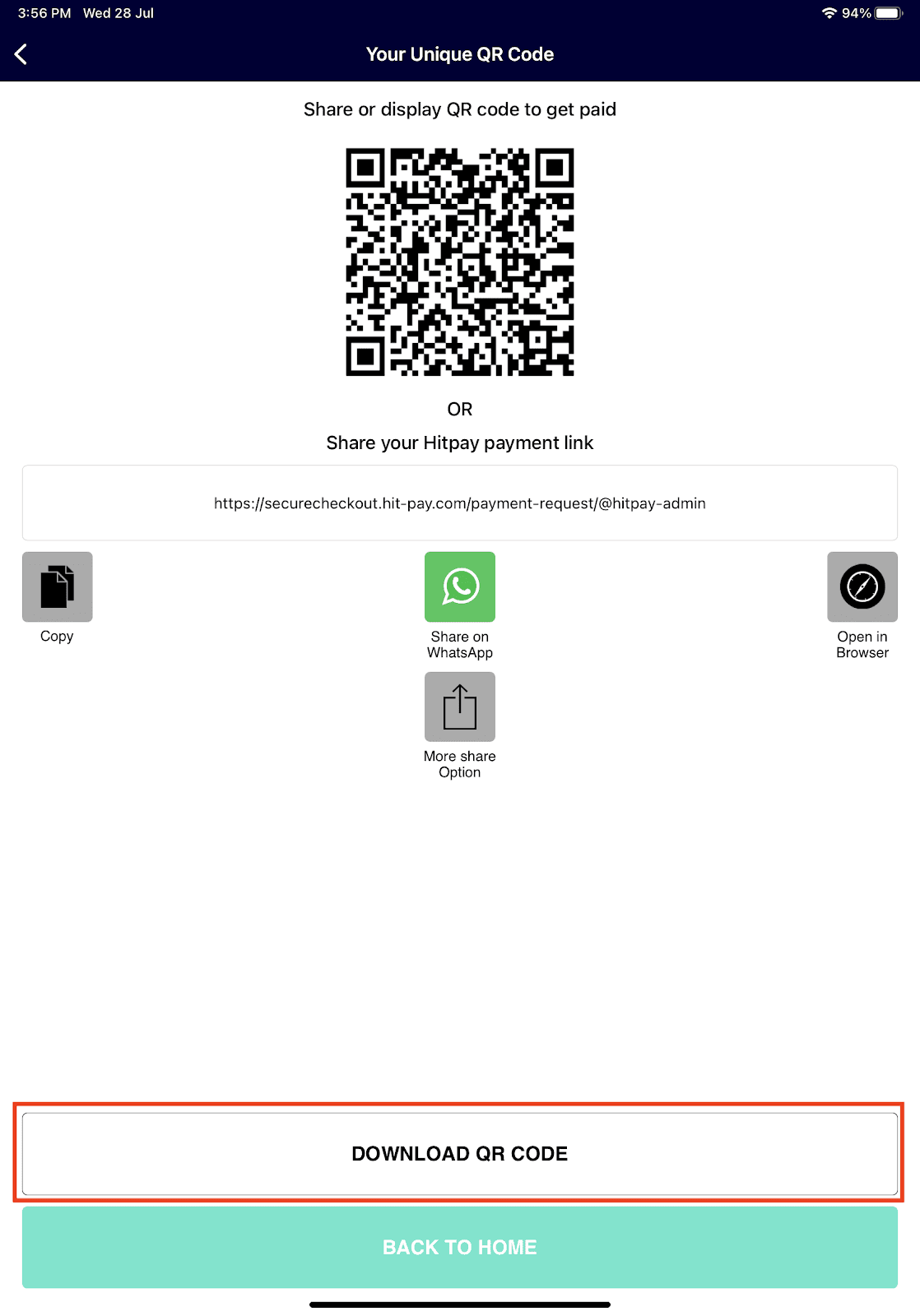 Step 3: Download your unique QR code for your customer to scan and make payment