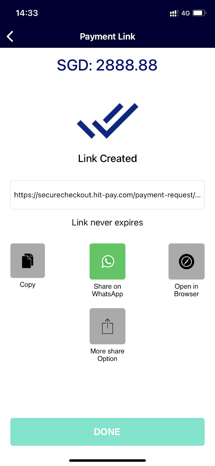Step 4: And you’re done! Share your newly-created payment link with your customer.