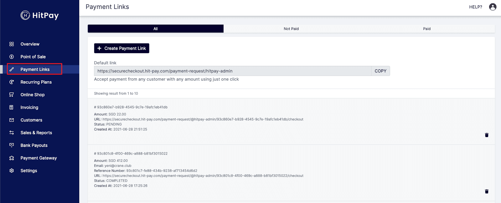 Step 1: Go to the Payment Links tab in the HitPay dashboard.