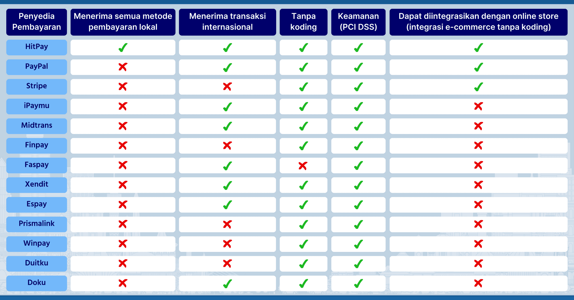 ✅ Menyediakan berbagai metode pembayaran online, baik yang berlaku di Indonesia maupun secara global, termasuk kartu kredit dan debit, transfer bank, gerai ritel, dan virtual account