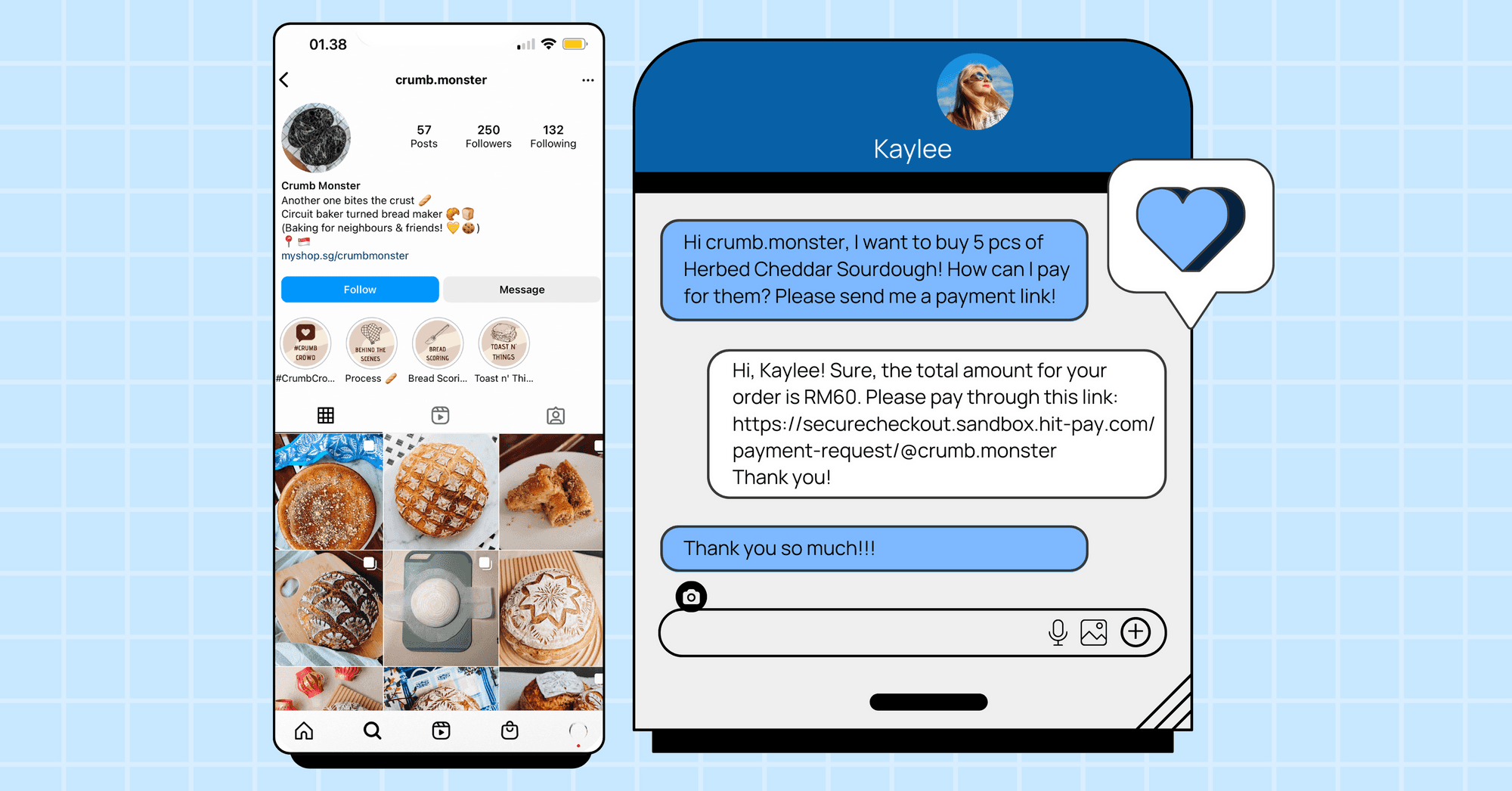 Online bakery Crumb Monster uses a HitPay payment link to get paid in Facebook Messenger