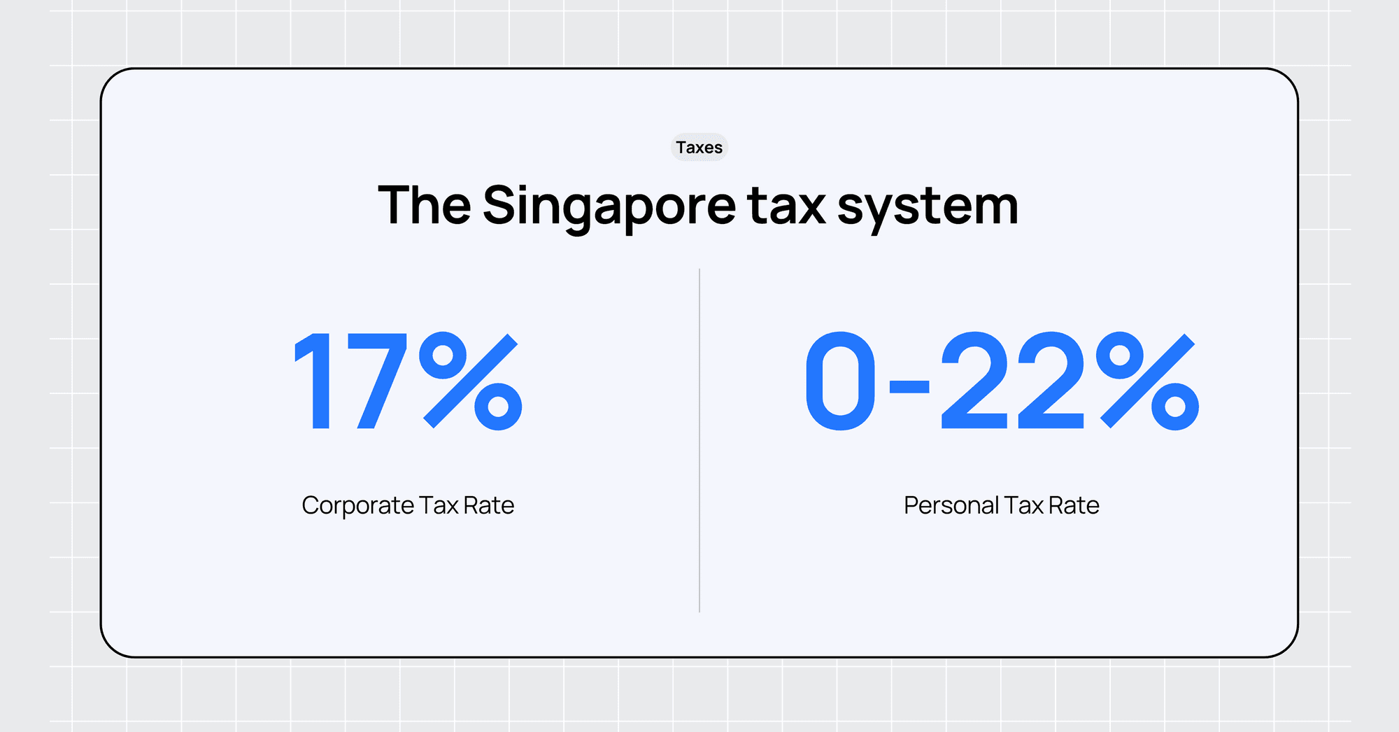 Singapore’s corporate tax rate is a flat 17% on taxable income, with a 75% tax exemption available for new companies for their first three years of operation.