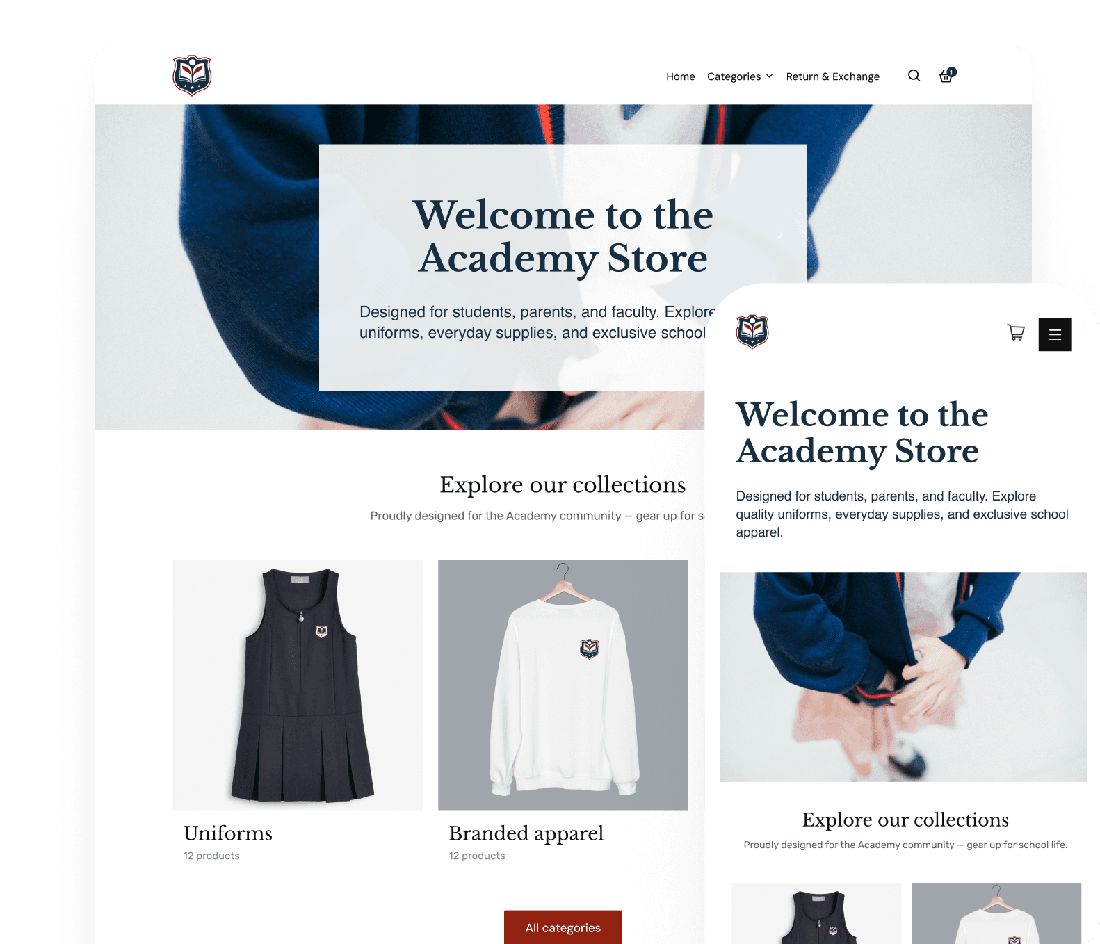 This private merchandise store design template lets you build a password-protected store for exclusive merchandise and internal events. Get inspired and create your website on the HitPay eCommerce Builder today.
