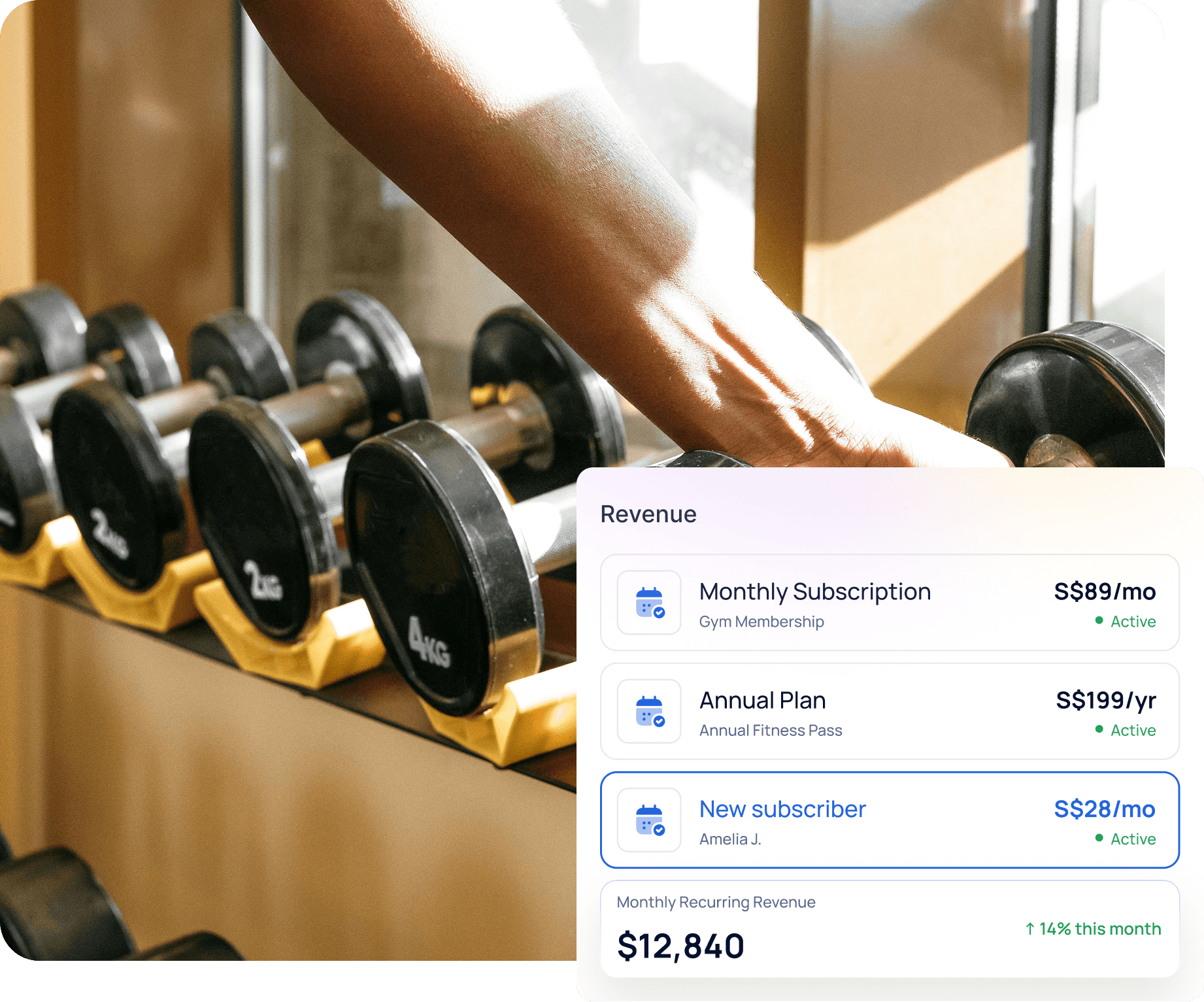 Malaysian gyms can use HitPay Subscriptions to charge members automatically each month via DuitNow, FPX, or card. Set up a recurring plan, share the sign-up link via WhatsApp, and HitPay handles every renewal — with automatic receipts and smart retries for failed payments. Funds settle to your Malaysian bank account in MYR the next business day.